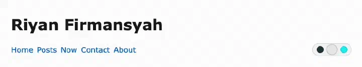 Ini fitur yang saya paling suka. Ide pill switcher ini saya dapat dari blog milik Christopher Himes yang punya desain switcher yang elegan. Sekarang jika kalian menggunakan tampilan desktop maka di pojok kanan sebelah menu navigasi ada tiga lingkaran kecil: gelap, terang, dan biru. Coba klik opsi-opsinya untuk mengubah skema warna.