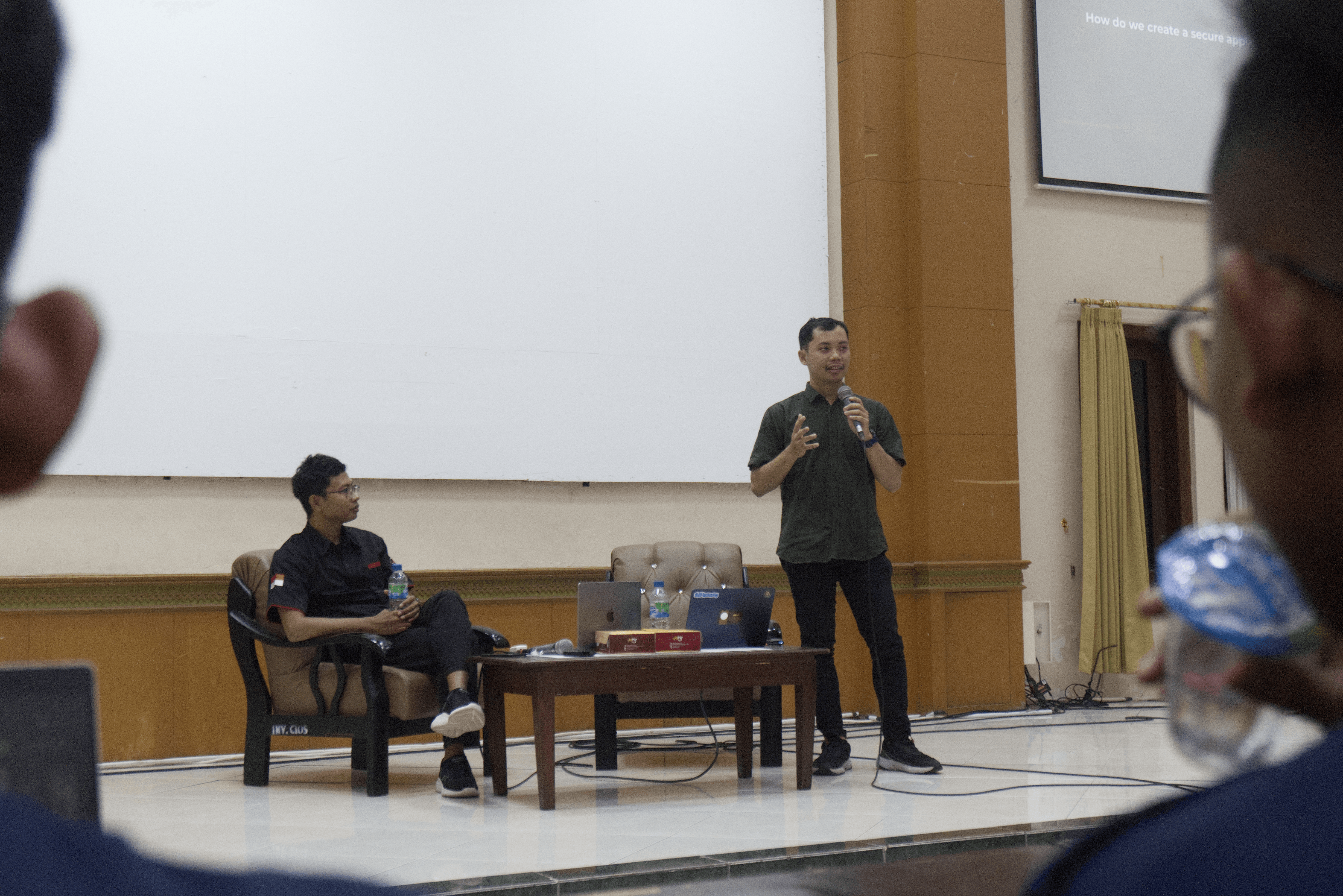 Selanjutnya saya juga mendapat ajakan untuk mengisi di seminar salah satu kampus di Ponorogo, kampus yang berbasis di pondok pesantren Gontor. Sebelumnya saya pernah juga mengisi acara di kampus namun saya rasa itu kurang sempurna karena sering kali pikiran kosong tiba-tiba saat didepan pendengar yang ramai. Kali ini menurut saya sudah sangat baik dari pengalaman yang sebelumnya, saya lebih percaya diri dan lebih lancar memberikan materi kepada para pendengar. Topik yang saya bawakan di kampus ini seputar secure coding, yang membahas bagaimana kita bisa membangun suatu aplikasi atau program dengan lebih aman.